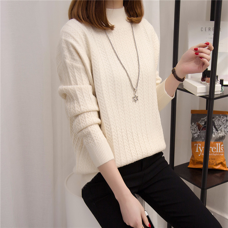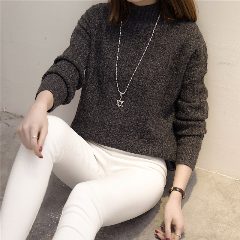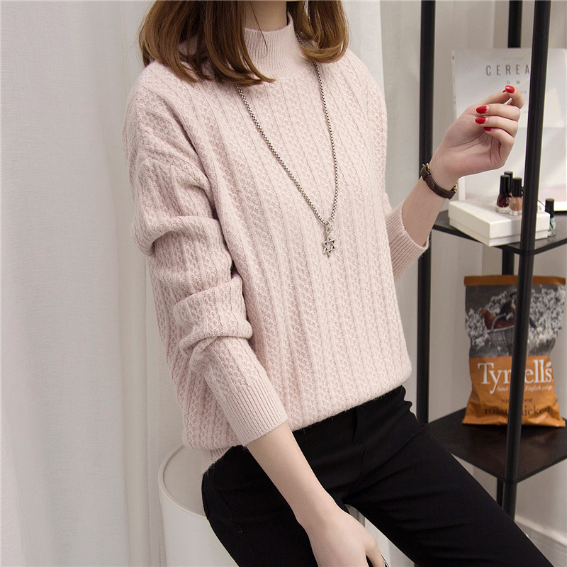 / 半高領套頭針織衫毛衣純色打底衫長袖韓版學生女裝冬裝新款潮