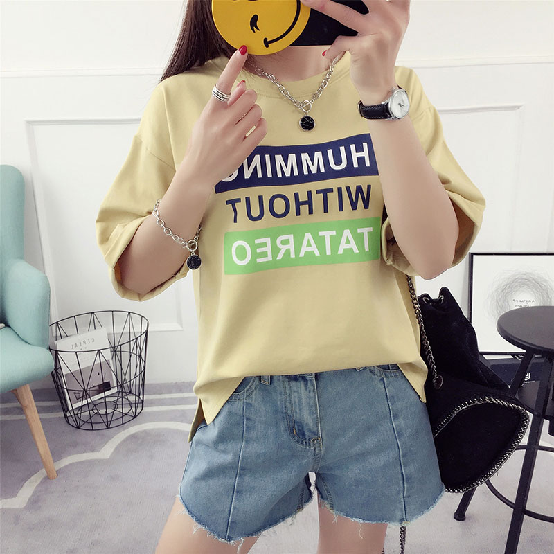 字母t恤女中袖春裝新款時尚上衣寬松韓版學生百搭半截袖夏裝