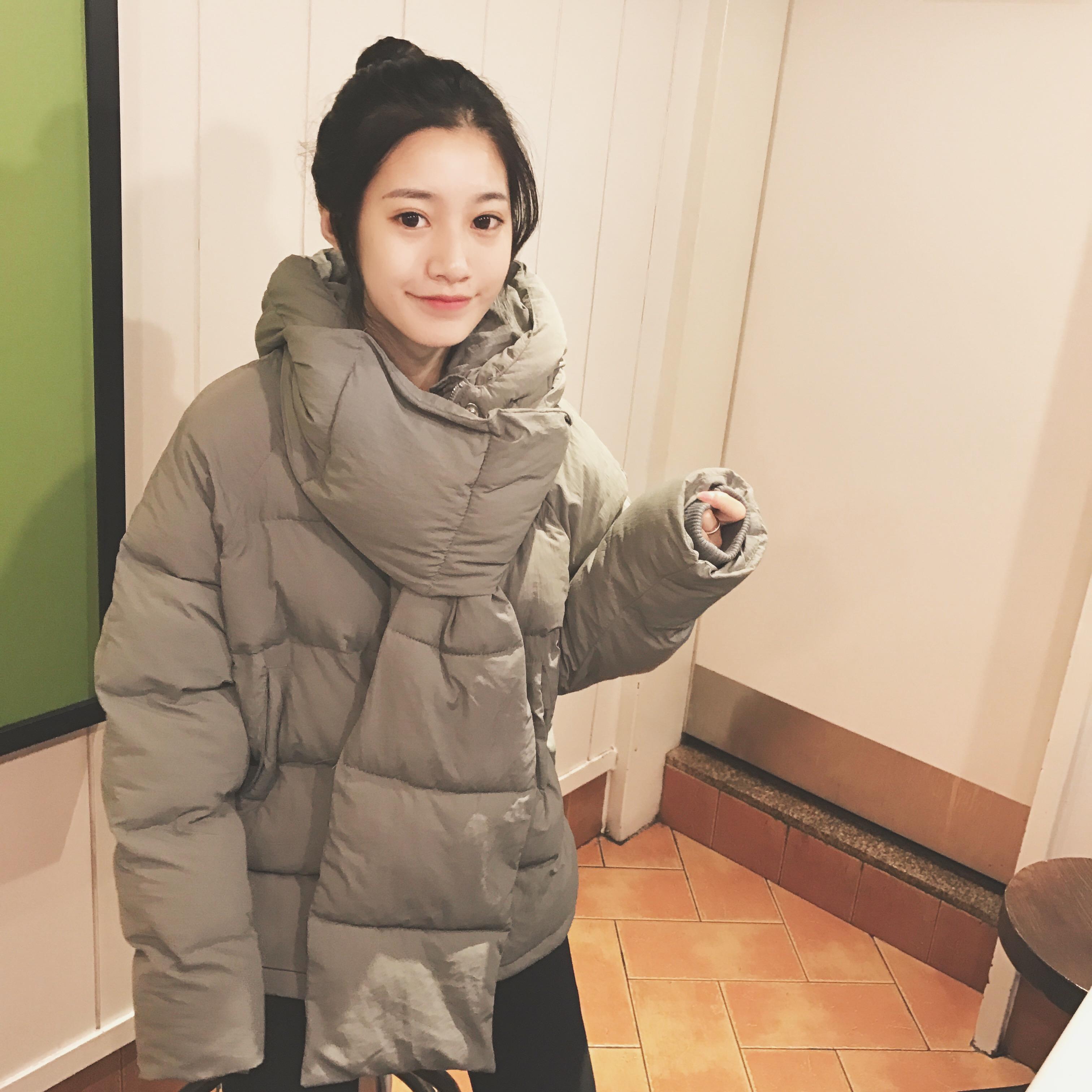 它采用了圍脖式棉衣的設計 而且可以任意拆卸 這是整件衣服的亮點