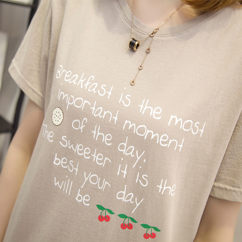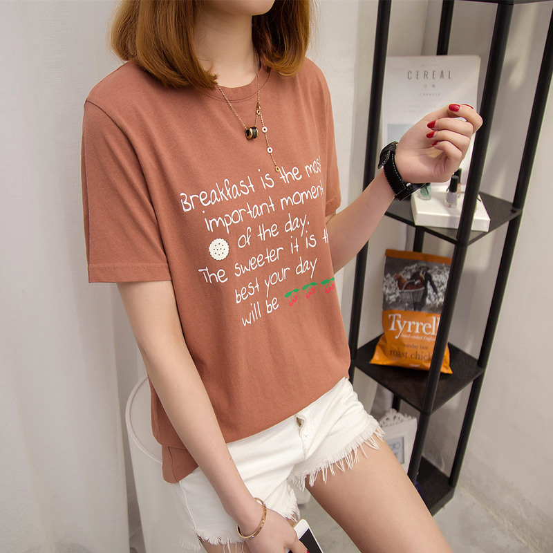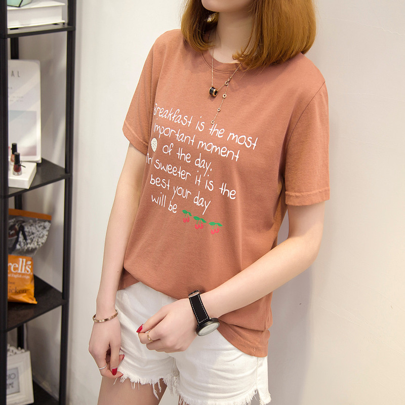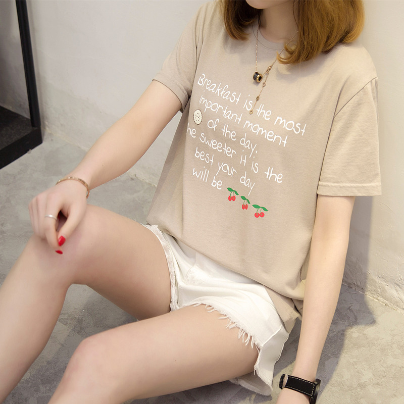 / 女裝夏裝新款潮寬松短袖t恤女字母休閑打底體恤衫百搭上衣女