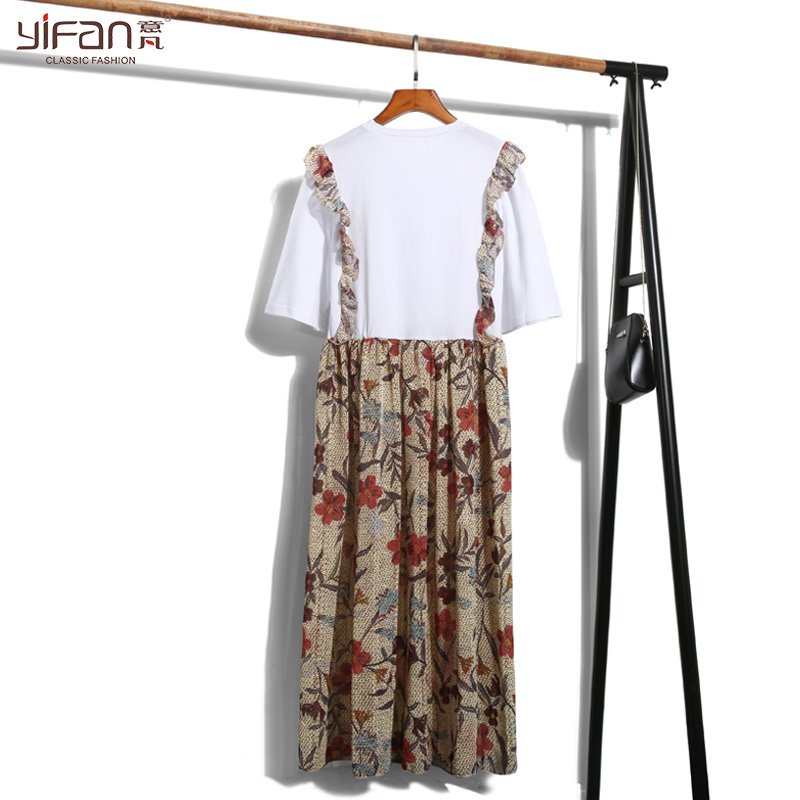 / 夏季韓版寬松碎花裙荷葉邊長裙T恤假兩件套雪紡吊帶連衣裙女