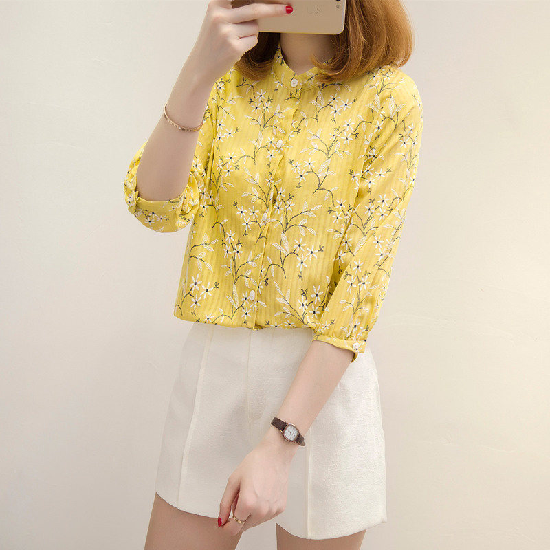 夏裝新款女裝寬松碎花白襯衣女夏季小清新上衣韓版雪紡襯衫女