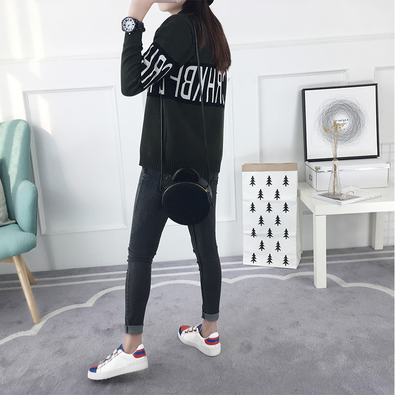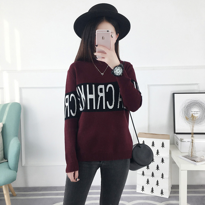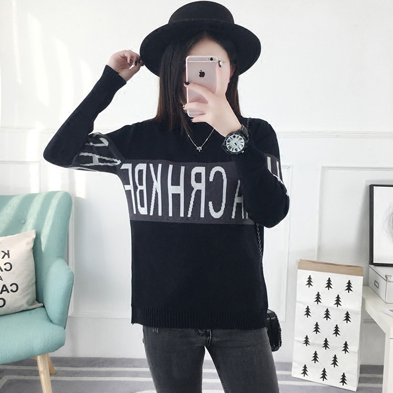 / 韓版套頭毛衣女秋冬短款長袖打底衫寬松字母針織衫新款女裝潮
