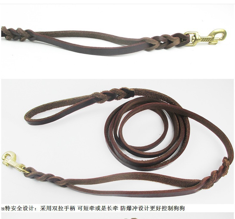 雙手柄設計加厚牛皮牽引 出行遛狗更安全