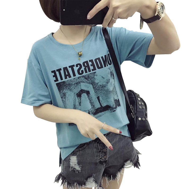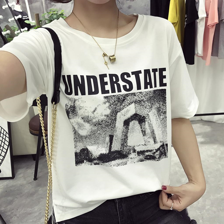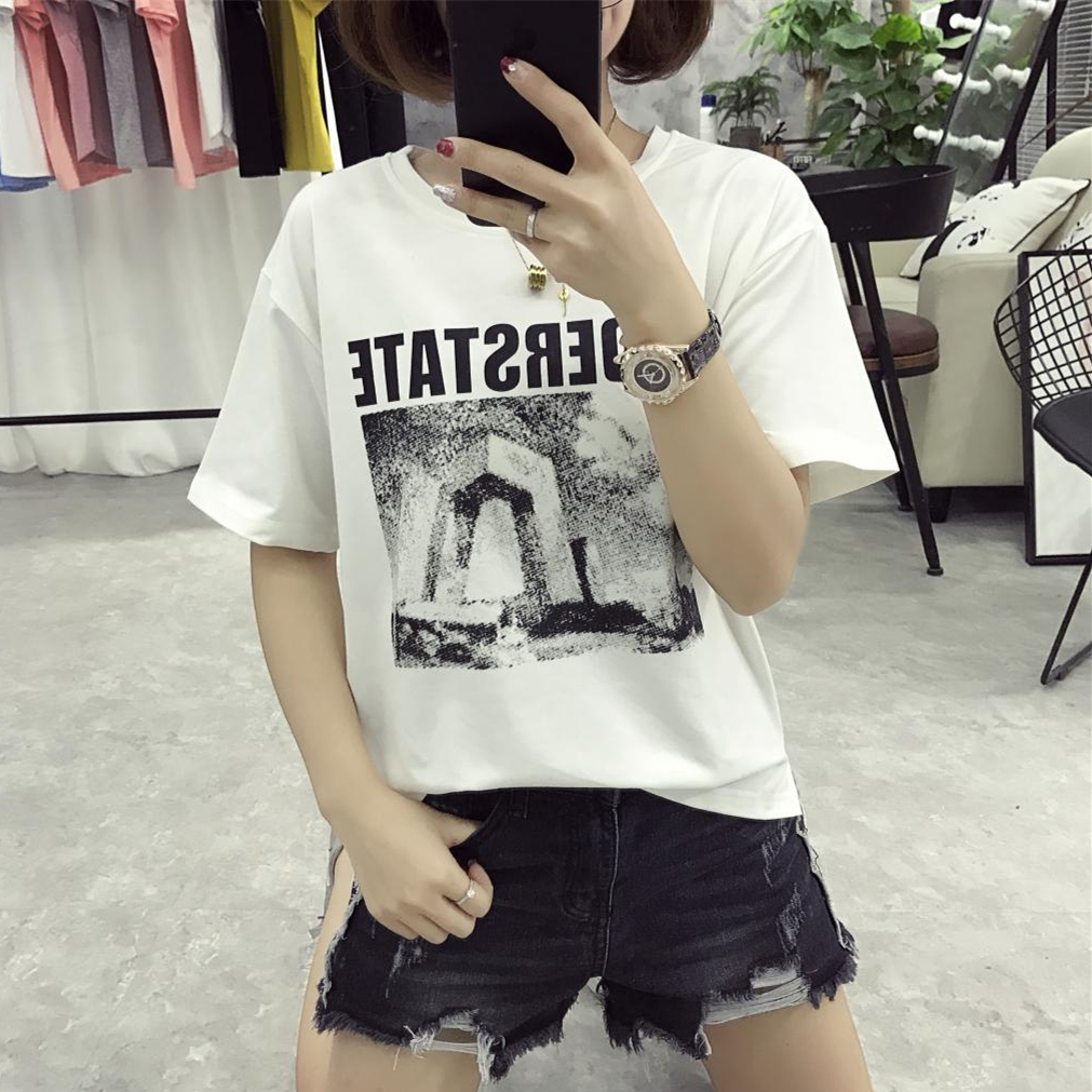 / 夏裝韓版印花上衣女bf風短袖女新款寬松學院風百搭T恤女大碼