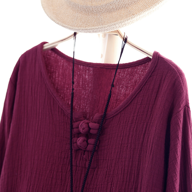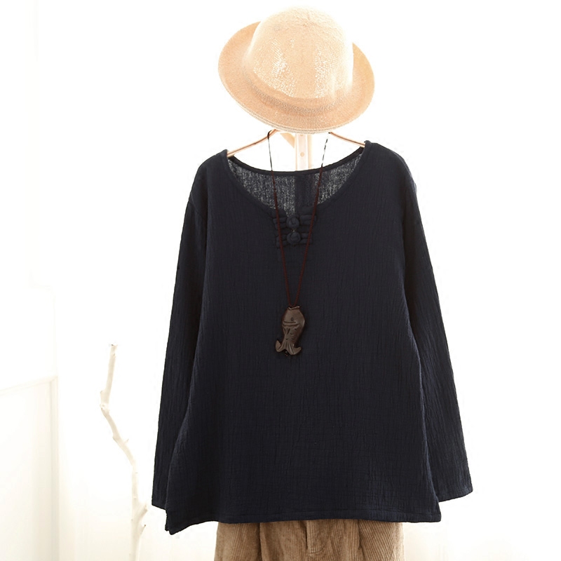 / 春裝新款女裝純棉上衣中長款打底衫圓領寬松長袖t恤純色休閑