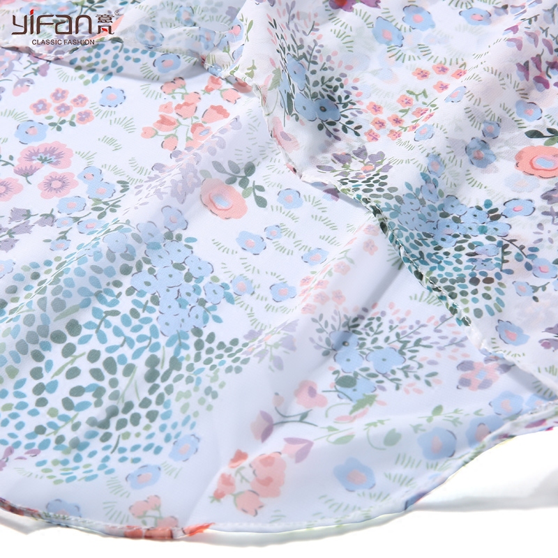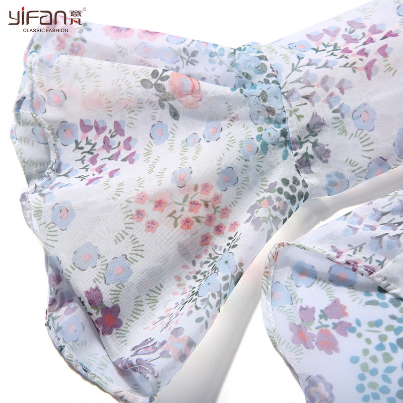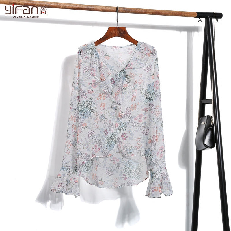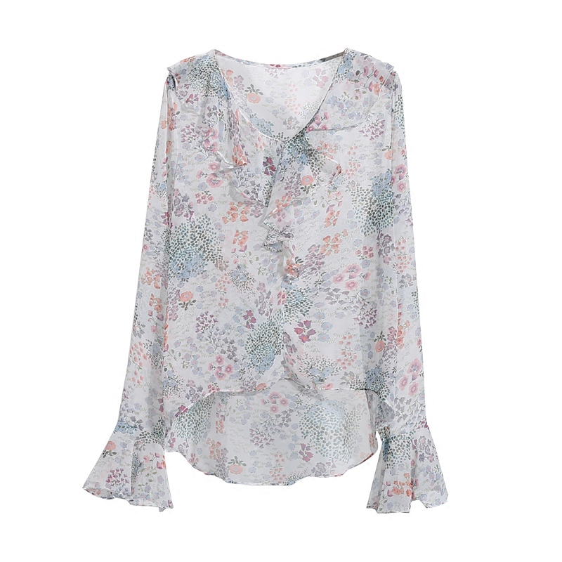 / 韓版夏季荷葉邊喇叭袖氣質雪紡衫女碎花長袖寬松V領打底上衣薄款