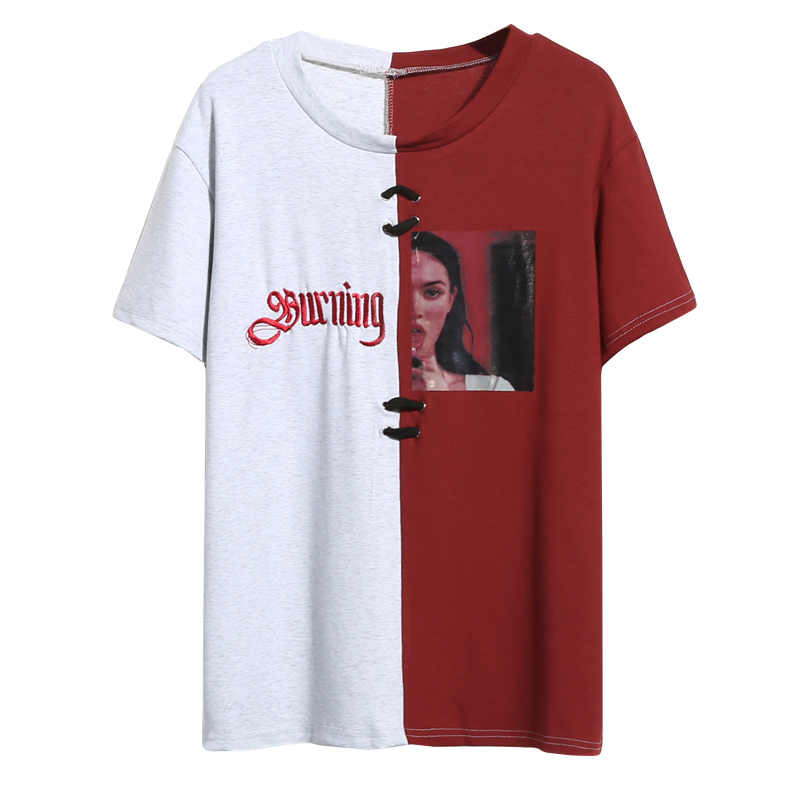 / 短袖t恤女夏裝時尚印花寬松上衣純棉半袖韓版拼色體恤潮學生