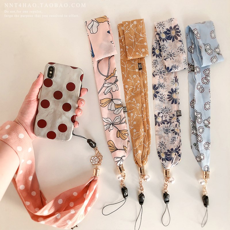 / 碎花掛繩氣質絲巾清新韓風布藝手機掛飾掛件女款日韓國繩子掛鏈