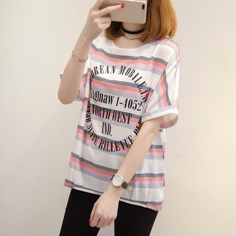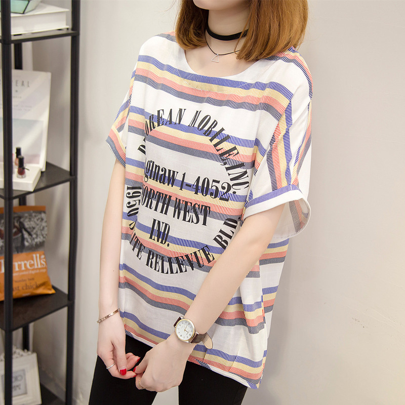 / 短袖上衣女夏新款條紋t恤女韓版學生小清新bf風體恤衫女百搭