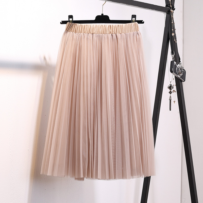 中長款網紗裙春夏季新款韓版女高腰百搭雪紡百褶蓬蓬半身裙子