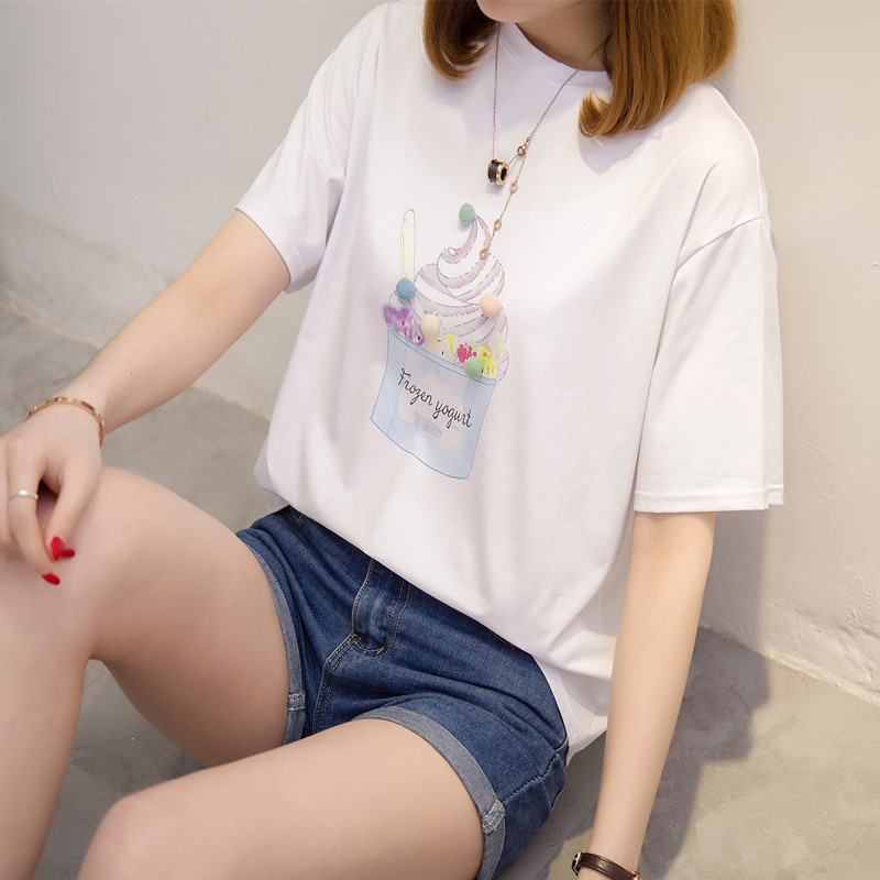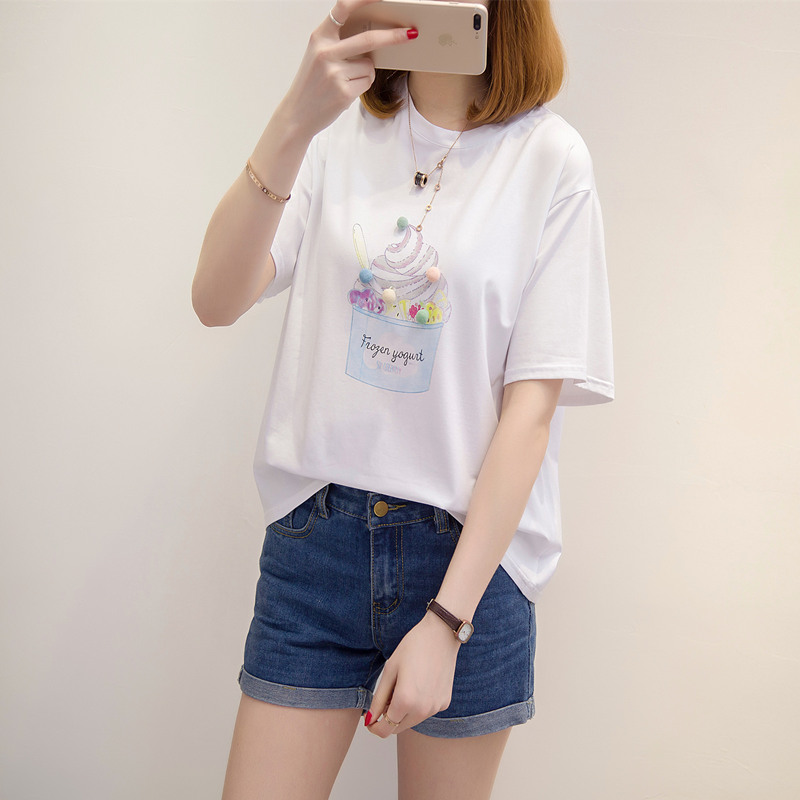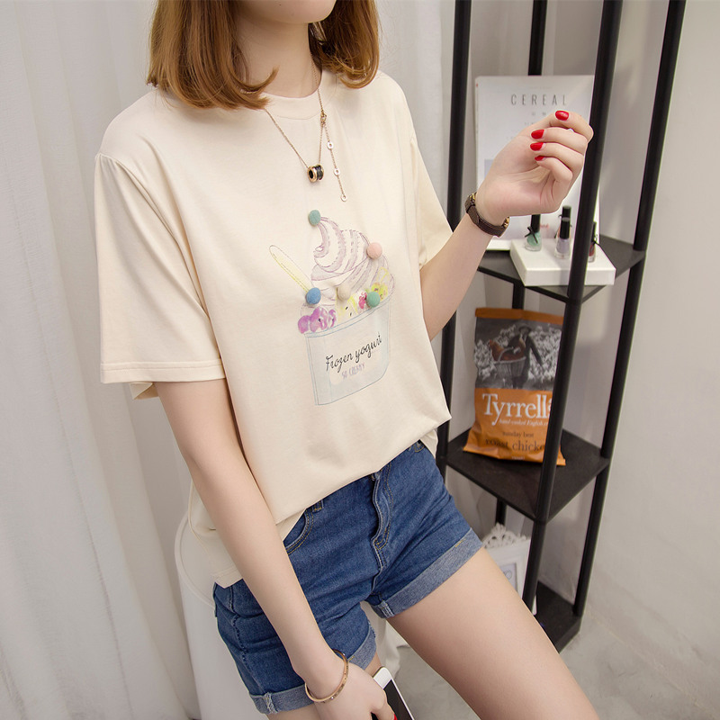 / 短袖t恤女新款韓版上衣女百搭寬松型學生打底體恤衫夏季女裝