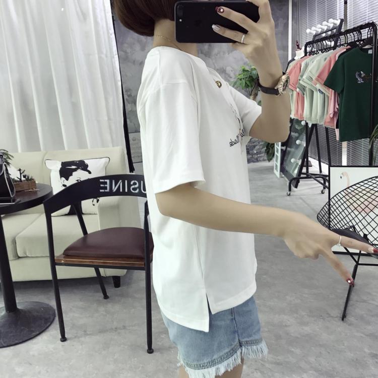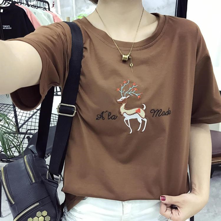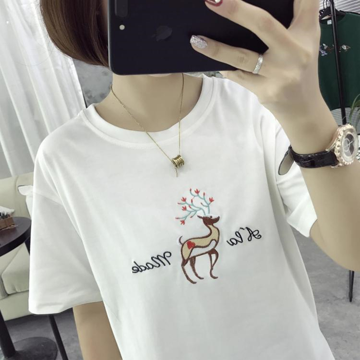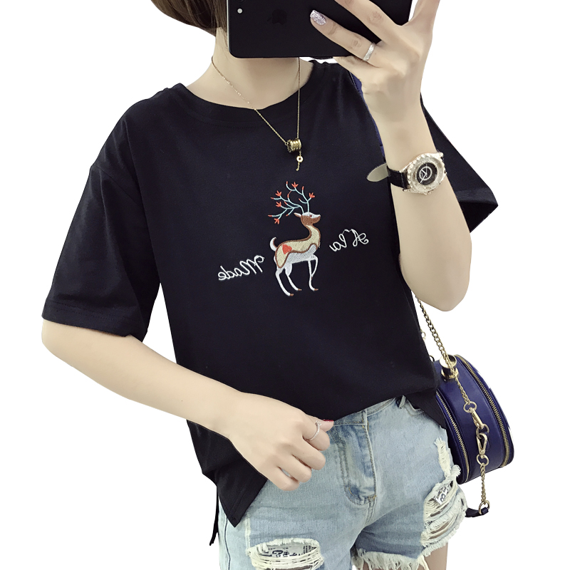 / 夏季韓版大碼情侶短袖t恤女卡通小鹿刺繡上衣顯瘦短款半截袖小衫