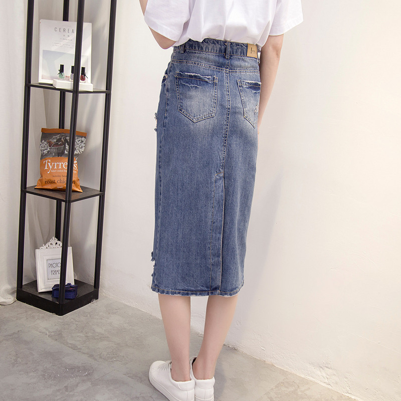 / 女裝夏裝新款潮破洞牛仔裙子女春中長款直筒寬松韓版低腰百搭