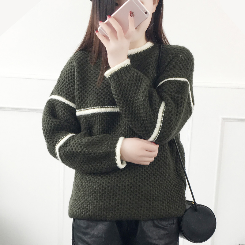 套頭毛衣女秋冬韓版寬松短款粗毛線打底針織衫女裝秋裝新款潮