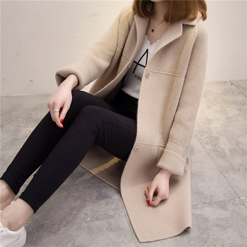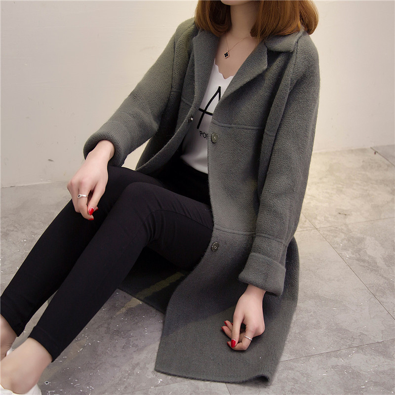 針織衫外套女秋冬中長款韓版寬松長款毛衣開衫女裝春裝新款潮