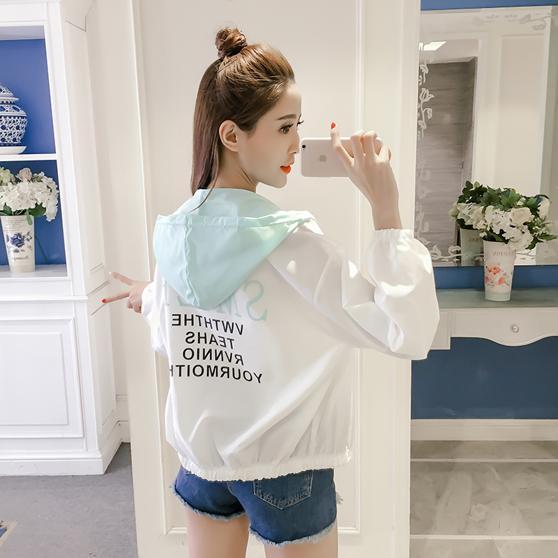 / 防曬衣女夏季新款韓版寬松百搭學生長袖連帽短款春夏薄外套潮