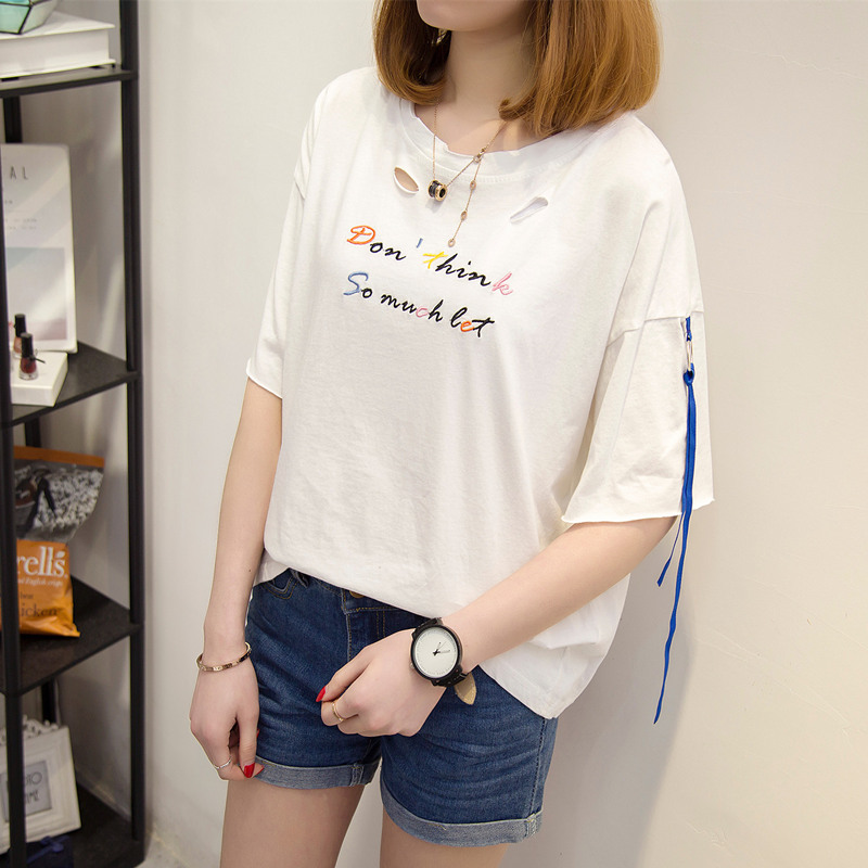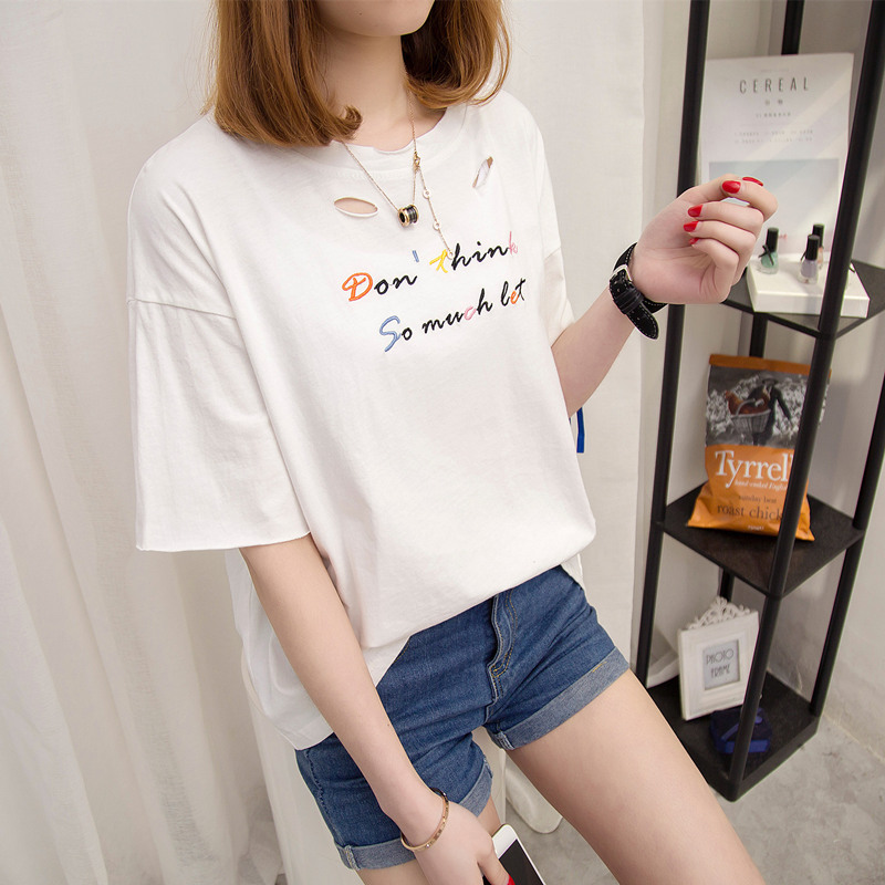 / 夏裝新款女裝白色t恤女半袖寬松上衣女夏韓版打底體恤衫百搭