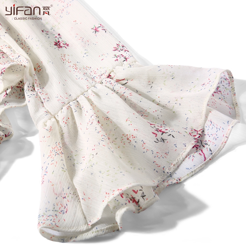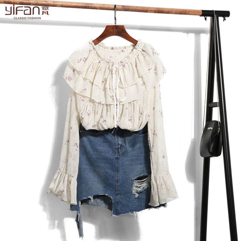 / 韓國女裝春夏新款甜美少女小清新碎花荷葉領娃娃衫女雪紡衫喇叭袖