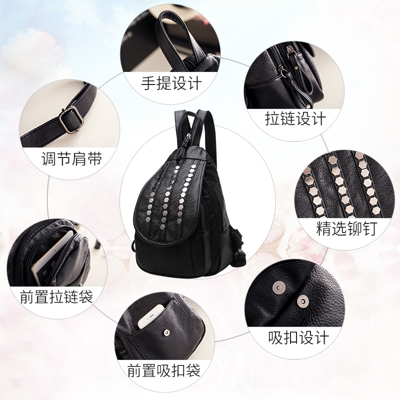 雙肩包女韓版pu時尚百搭鉚釘個性迷你小包包新款背包女包潮