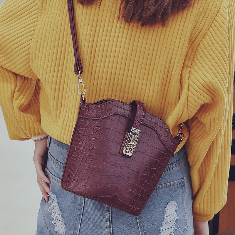 / 包包女新款潮鱷魚紋迷你水桶包韓版復古單肩女包百搭斜挎小包