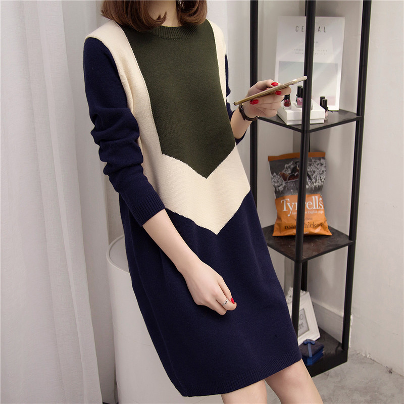/ 女裝韓版中長款套頭毛衣女秋冬寬松針織衫打底毛衣裙裝新款潮