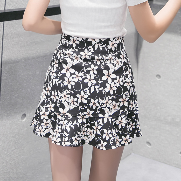 / 夏季韓版高腰小碎花半身裙女荷葉邊魚尾裙褲裙A字包臀短裙新