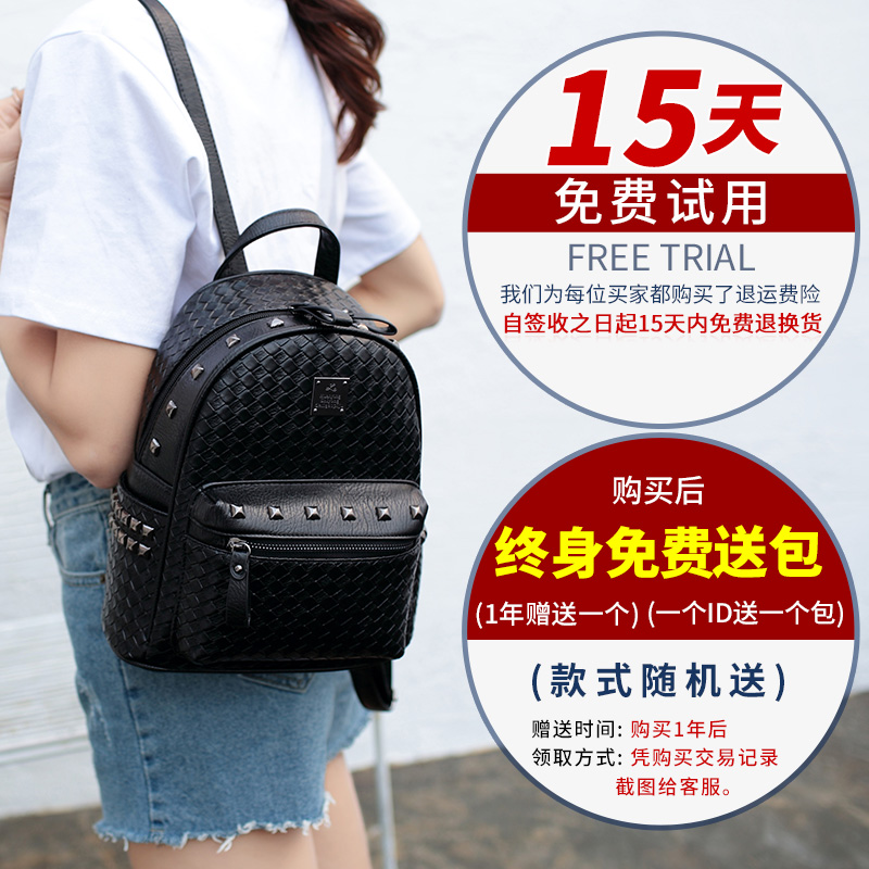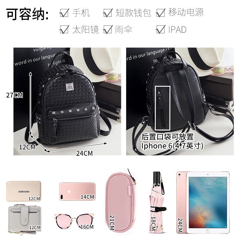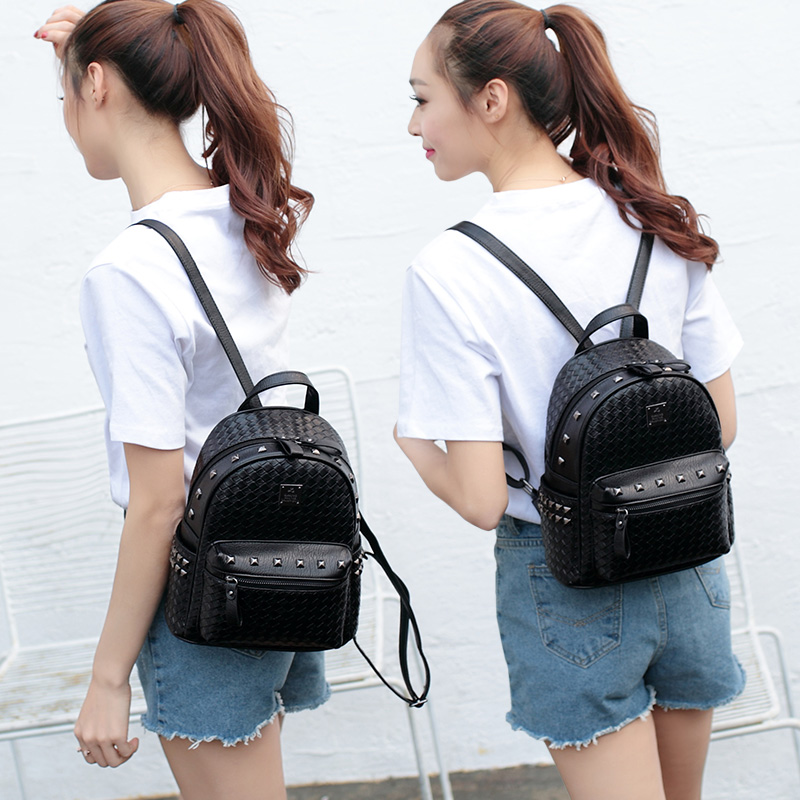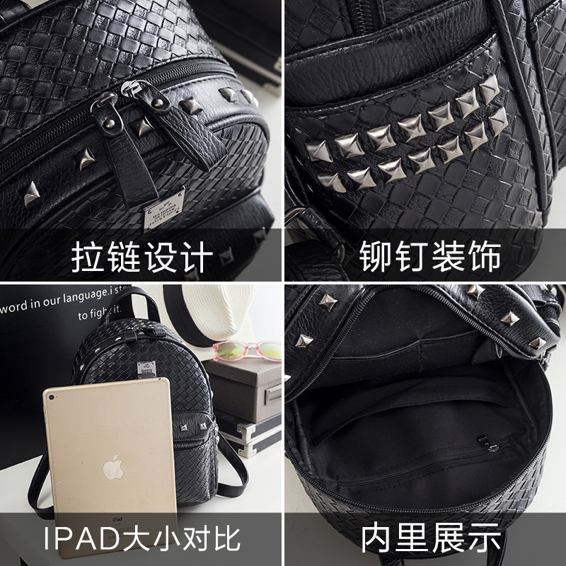 鉚釘雙肩包女韓版pu歐美時尚個性百搭編織女士包包新款潮背包