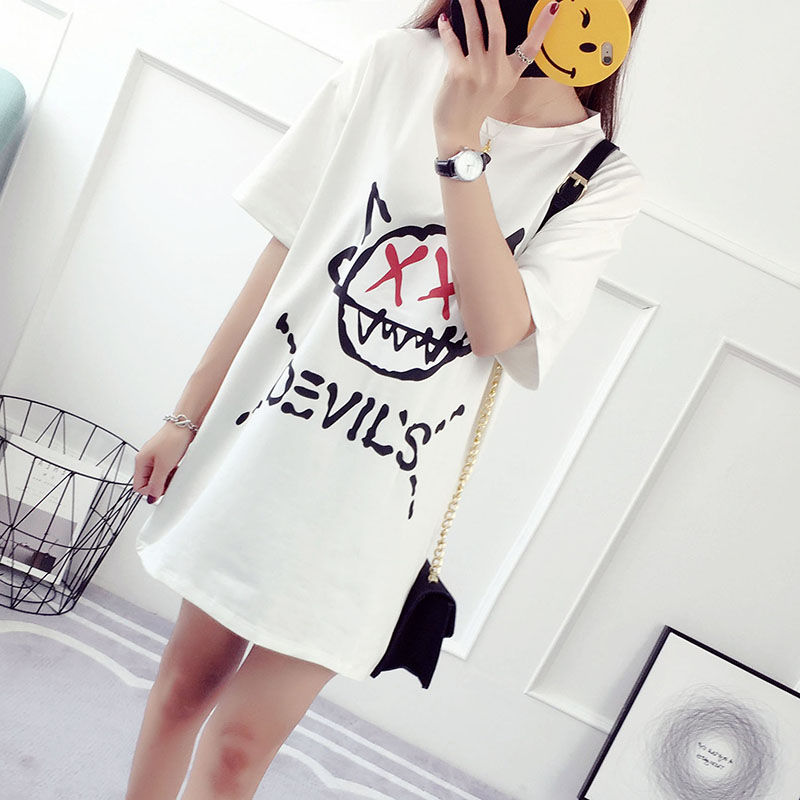 夏裝新款韓版百搭學生寬松上衣中長款打底衫短袖t恤女半截袖
