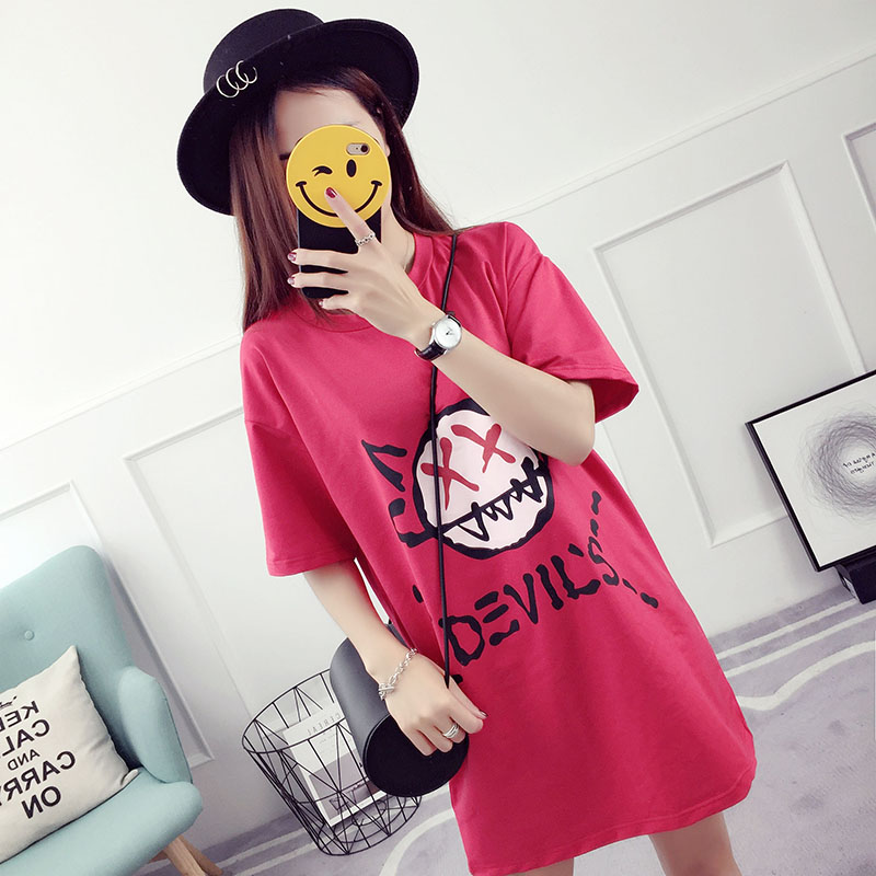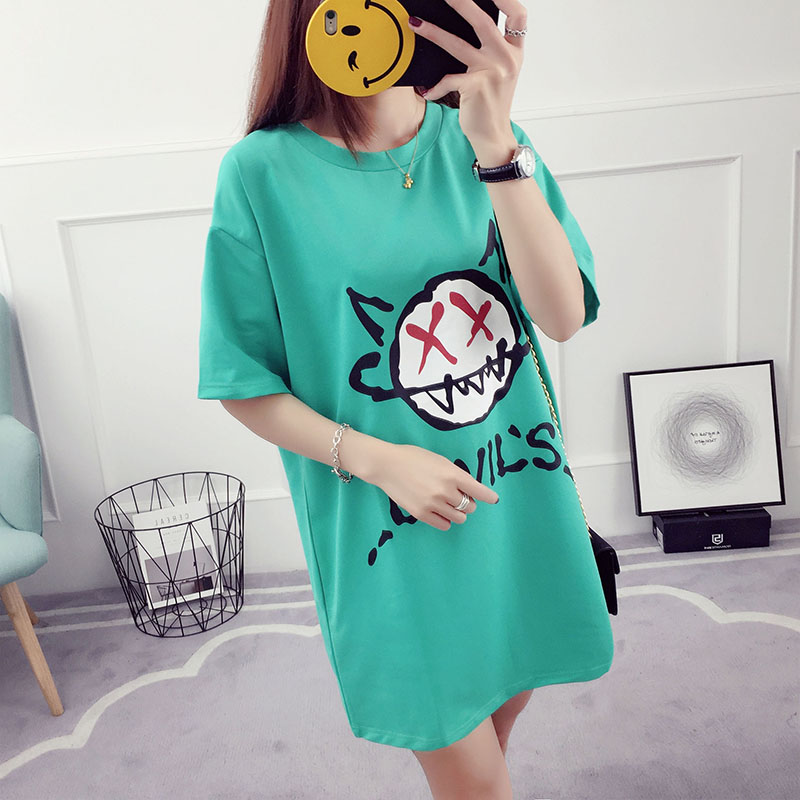 / 夏裝新款韓版百搭學生寬松上衣中長款打底衫短袖t恤女半截袖