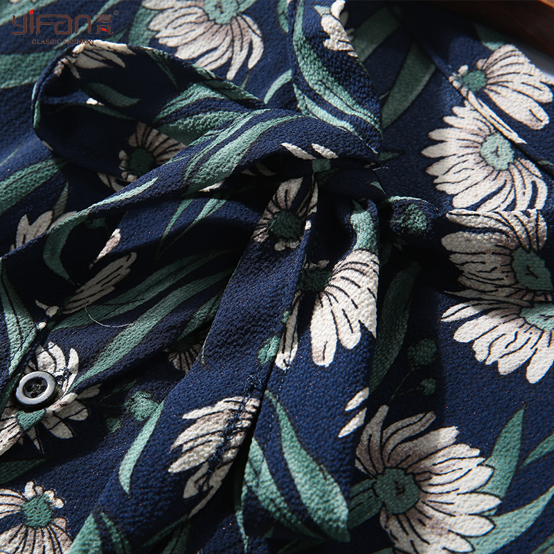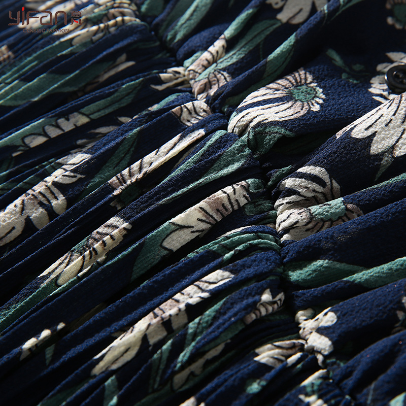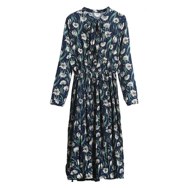 / 新款春秋季雪紡百褶碎花連衣裙修身顯瘦氣質中長款裙大擺