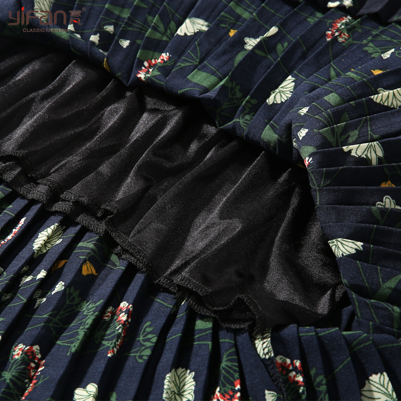 / 春款韓版小碎花收腰顯瘦中長款百褶雪紡半身裙女裝高腰打底裙