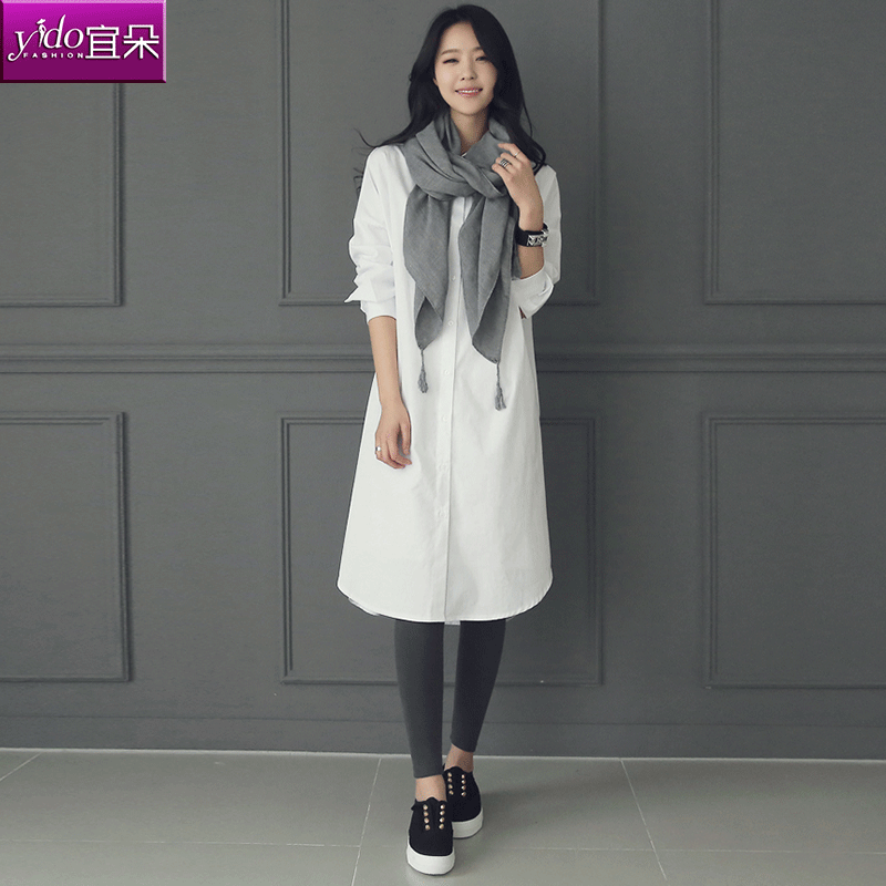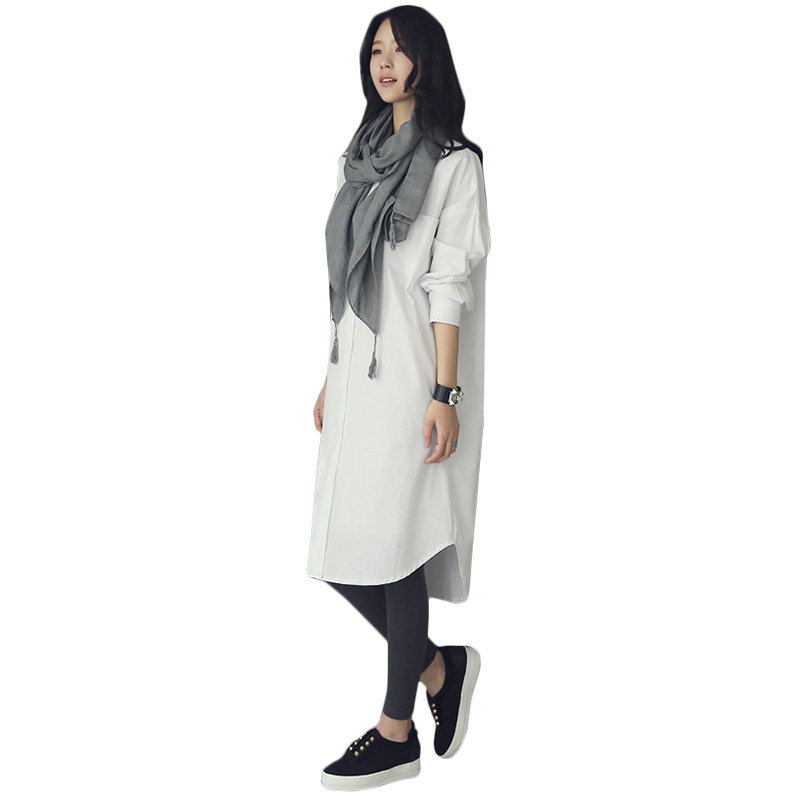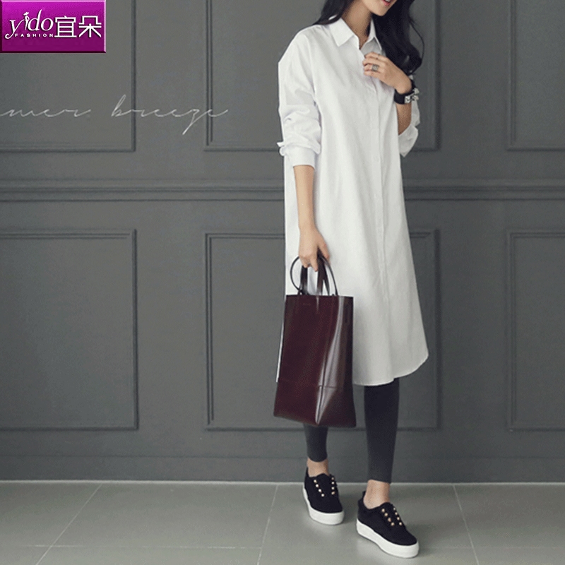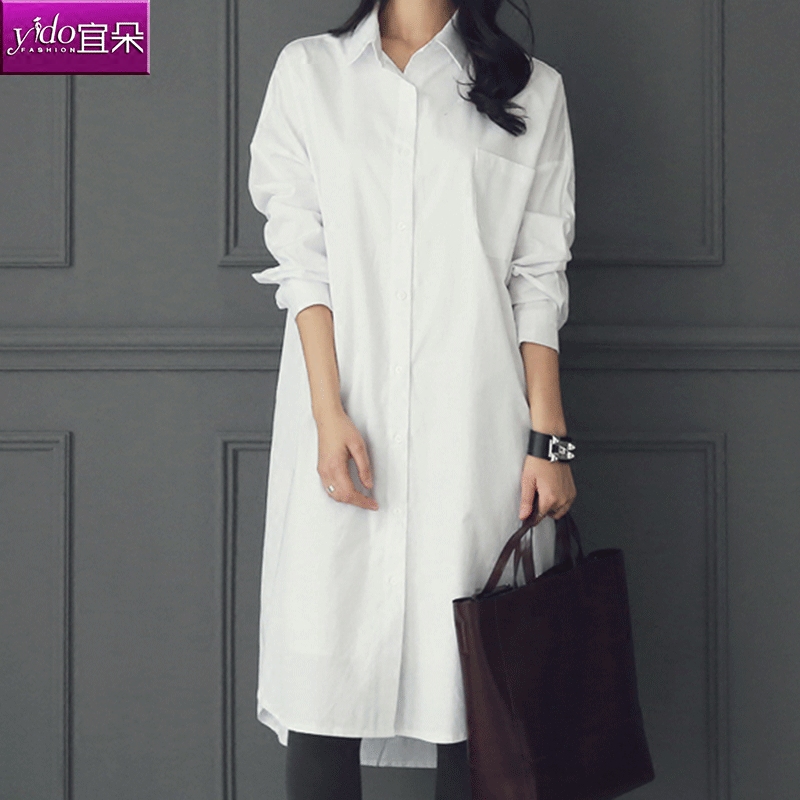 / 白色襯衫女中長款寬松韓版長袖外穿打底白色襯衣女春季新款潮