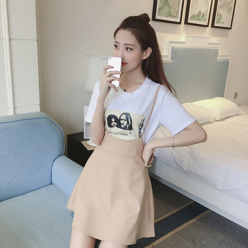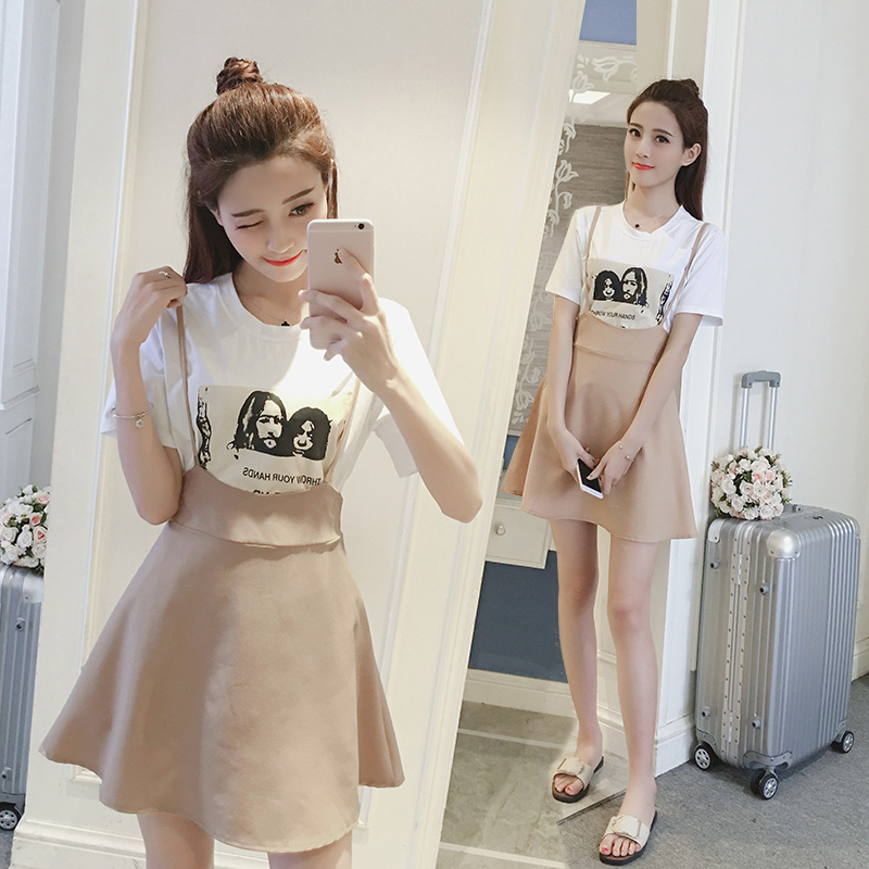 / 夏季新款女裝韓版時尚印花短袖T恤+吊帶裙顯瘦休閑兩件套裝裙