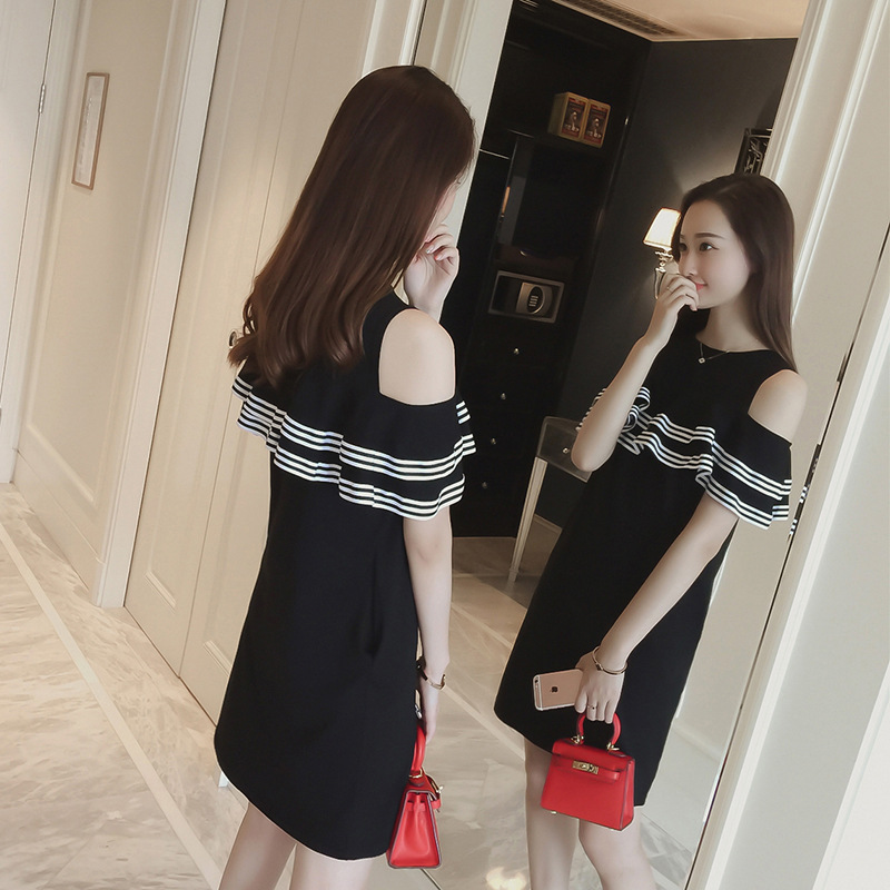 夏裝新款名媛性感露肩中裙子修身顯瘦荷葉邊連衣裙休閑沙灘裙