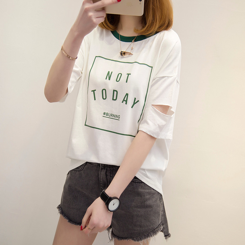 / 短袖上衣女夏新款字母寬松t恤女中長袖半袖韓版打底體恤百搭