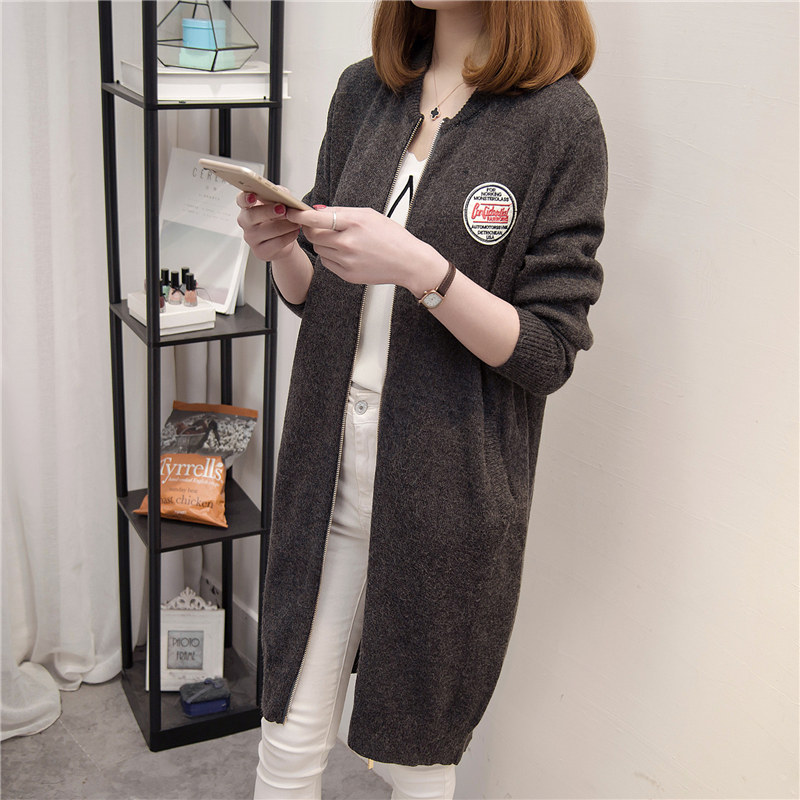 女裝韓版寬松中長款毛衣外套女學生針織衫開衫春裝棒球服新款