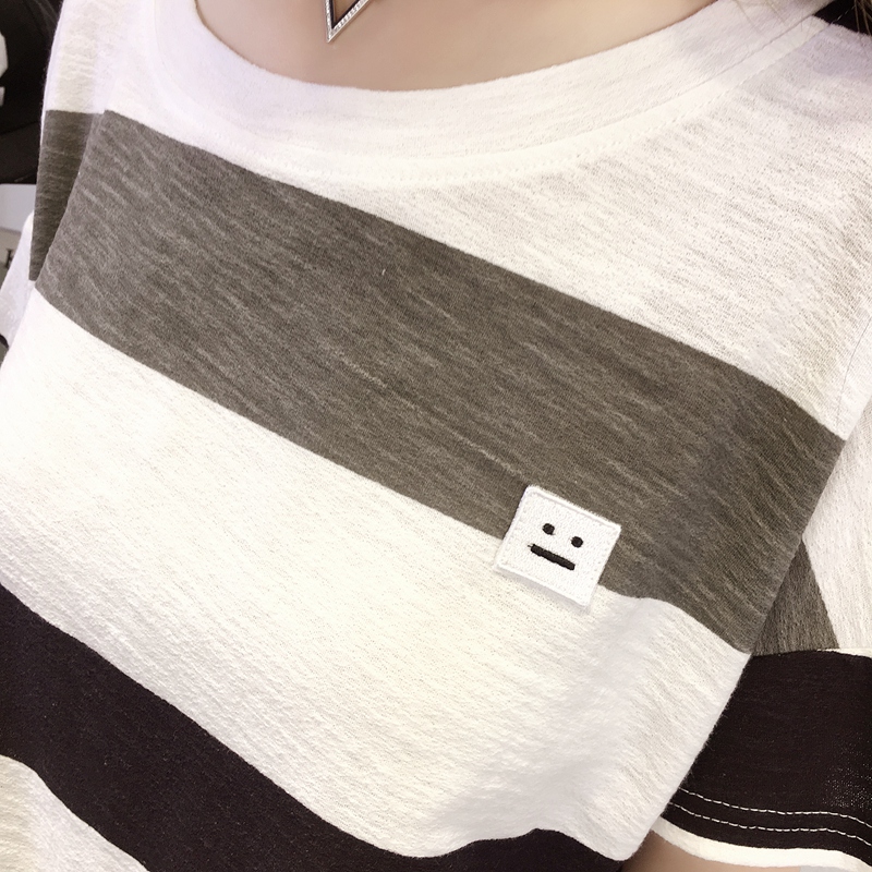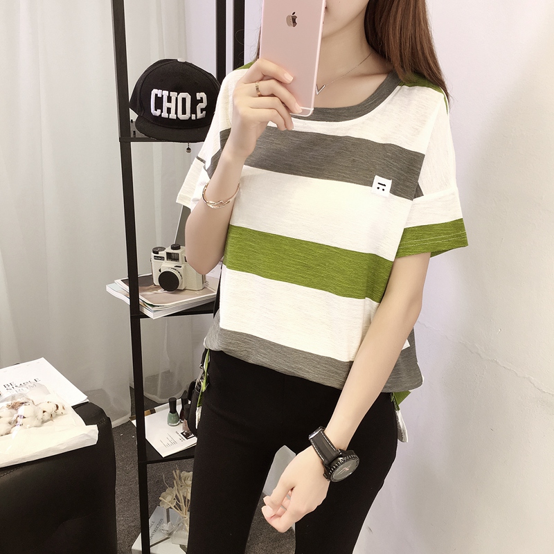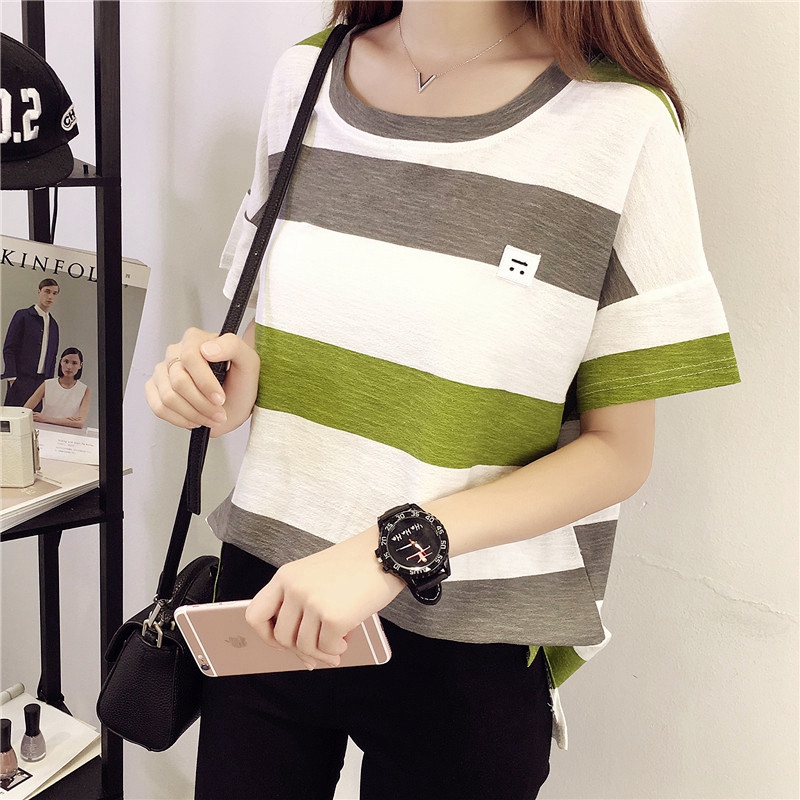 / 條紋t恤女短袖夏裝新款韓版寬松時尚簡約百搭上衣女夏體恤衫