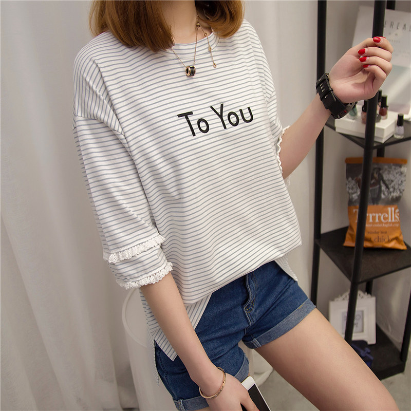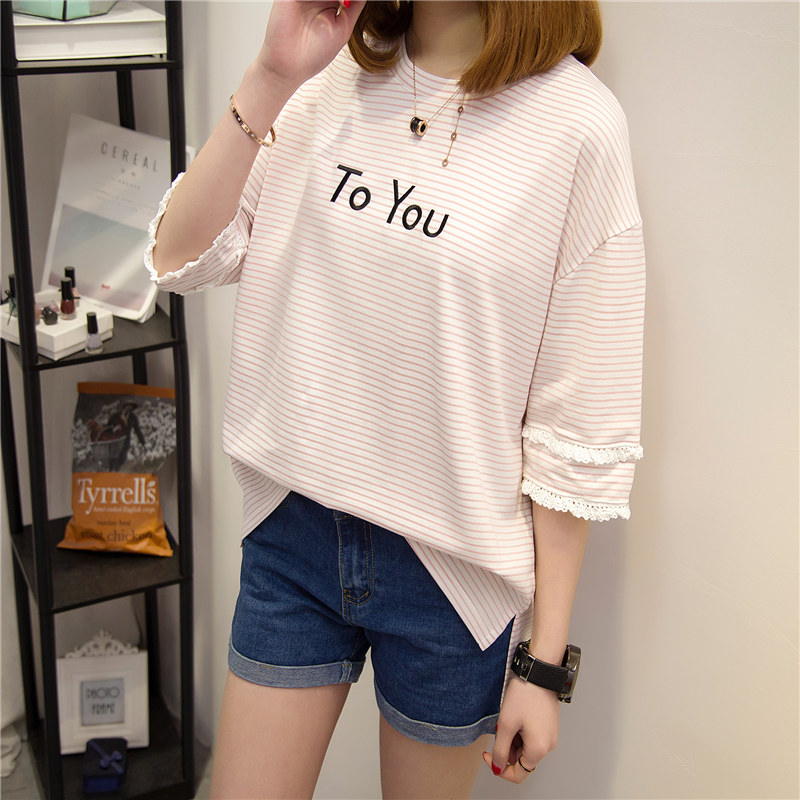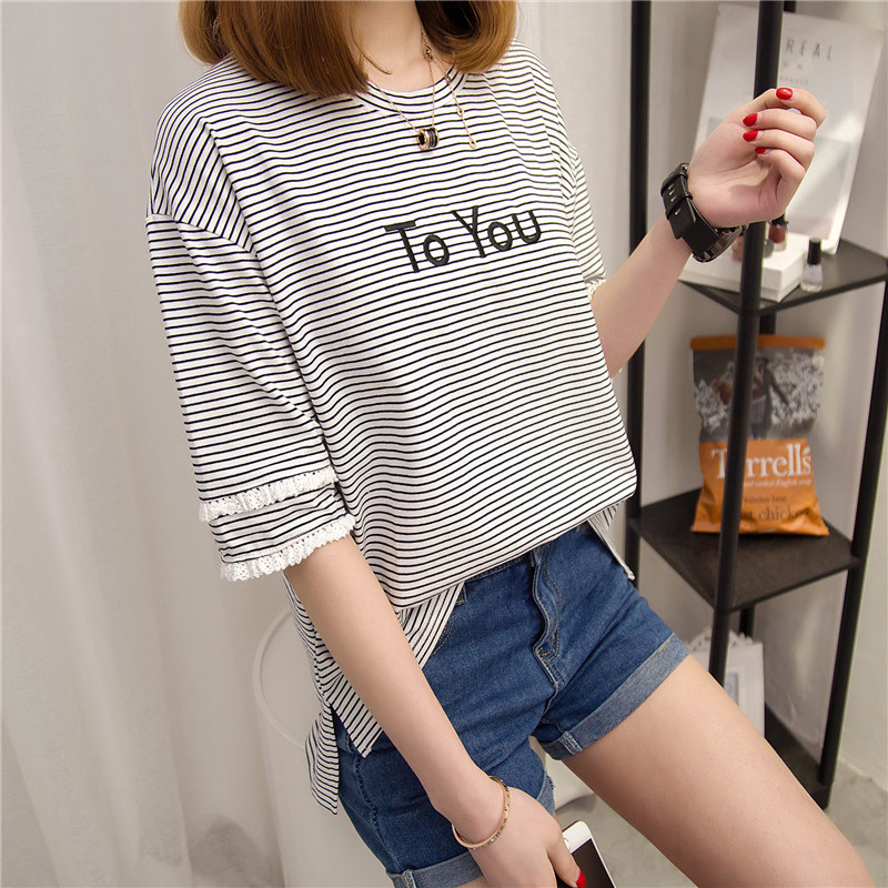 / 打底衫女條紋短袖t恤女寬松上衣韓版體恤女夏春季時尚新款潮
