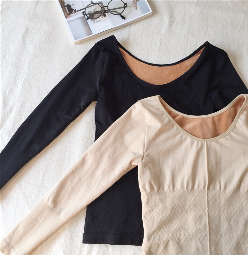 秋冬韓版百搭顯瘦圓領套頭加絨加厚打底衫長袖保暖T恤女上衣