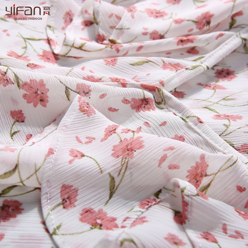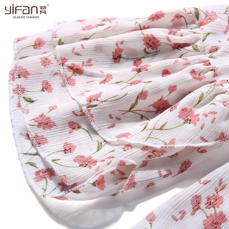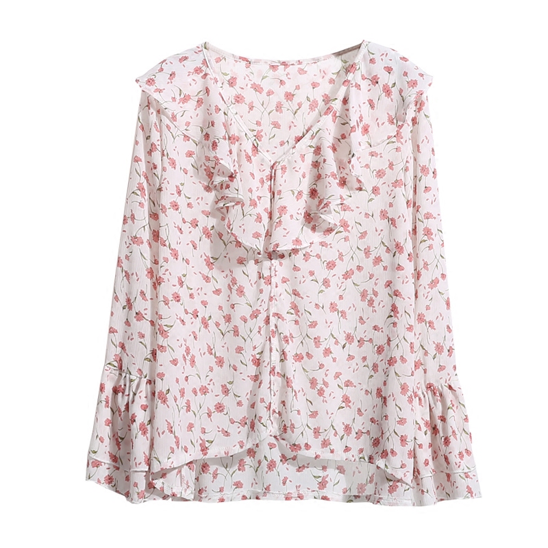 / 韓版夏新款荷葉邊喇叭袖氣質小清新雪紡衫女碎花長袖寬松V領襯衫