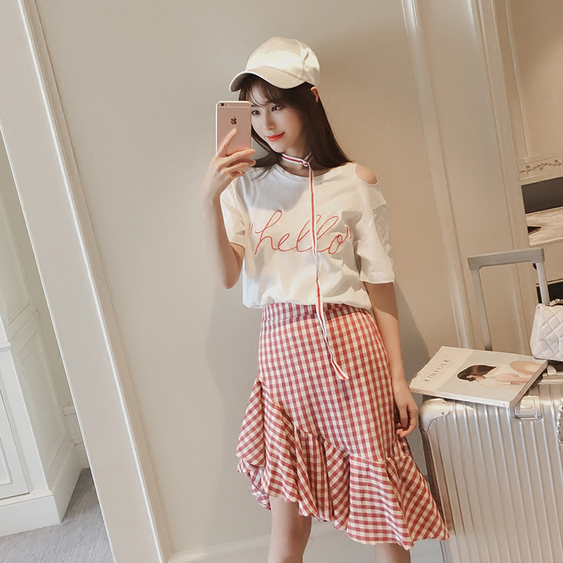 / 春夏季新款女裝潮韓版小清新學生顯瘦兩件套裝裙子魚尾連衣裙