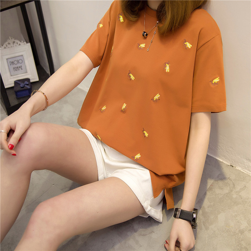 夏裝新款女上衣白色短袖t恤女夏寬松體恤小衫韓版衣服女百搭
