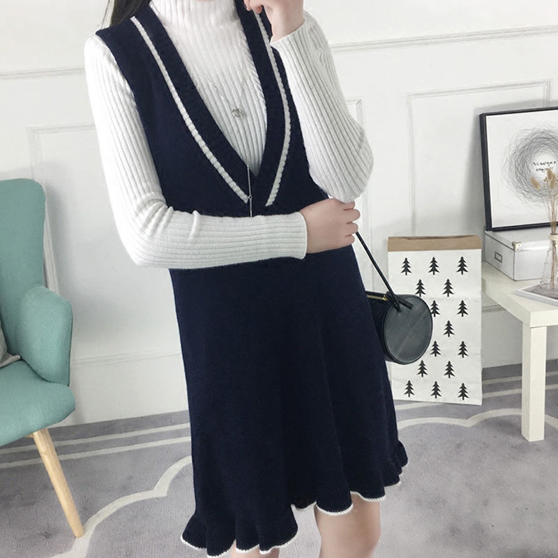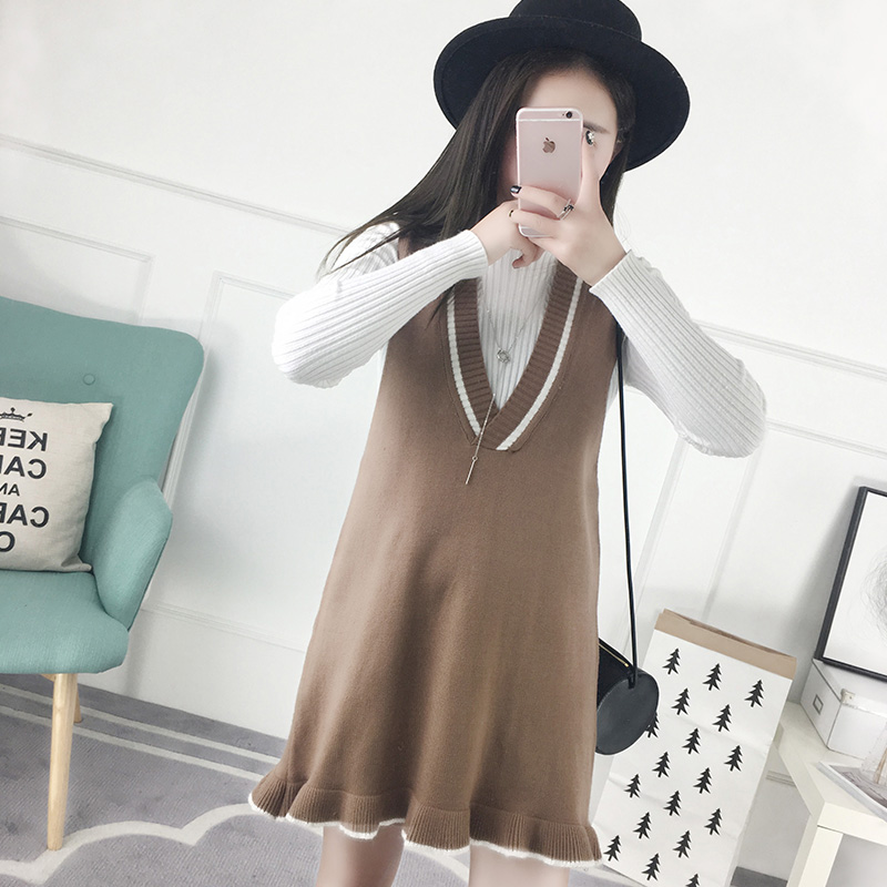 / 中長款韓版毛衣裙女背帶裙背心吊帶裙荷葉邊無袖寬松秋冬連衣裙潮