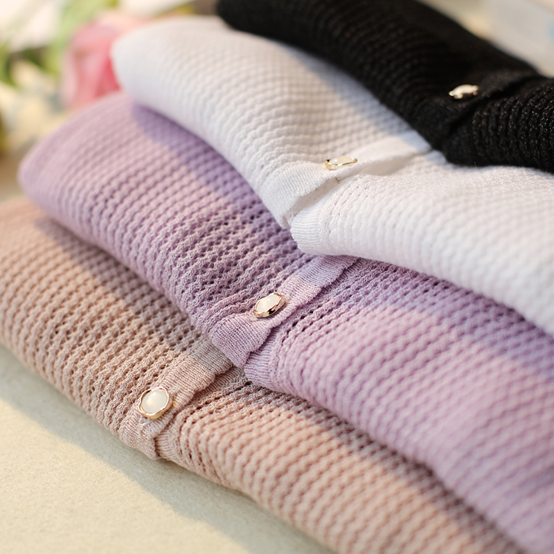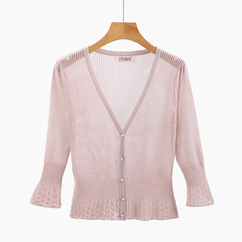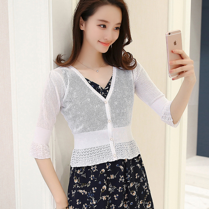 鏤空針織開衫女薄短款外搭七分袖披肩小開衫女夏薄款針織衫外套