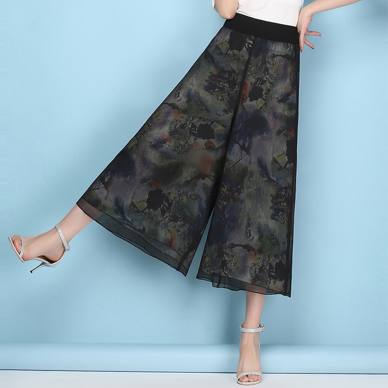 / 闊腿褲女九分褲春夏高腰寬松大碼休閑松緊雪紡寬腿褲裙大腳甩腿褲