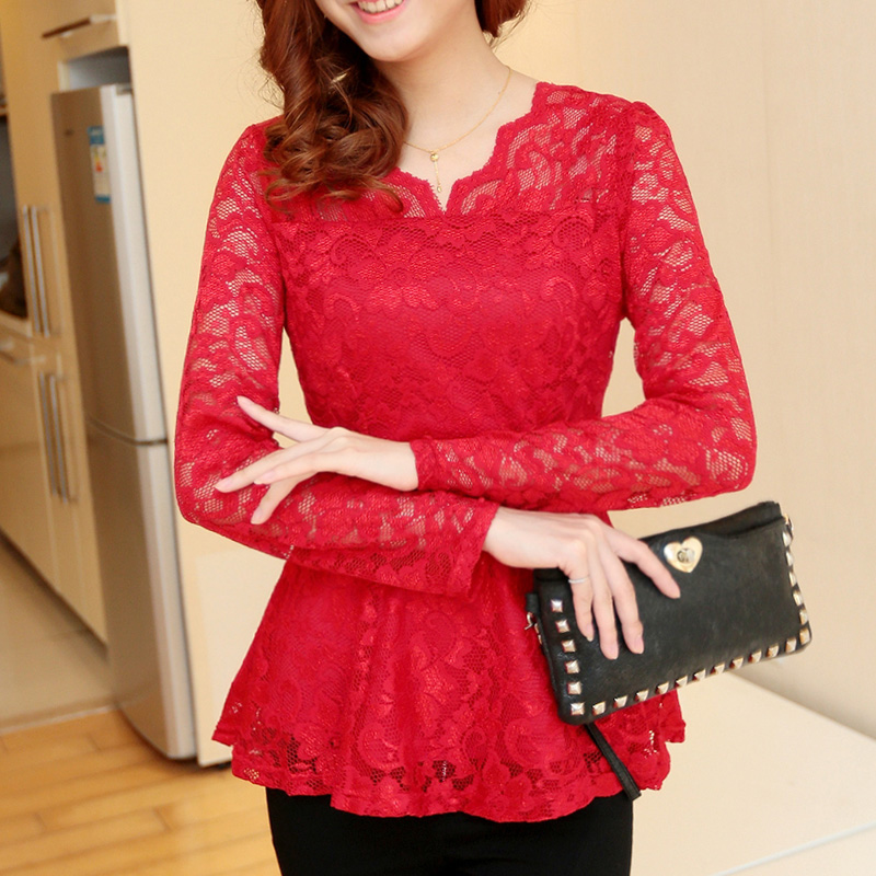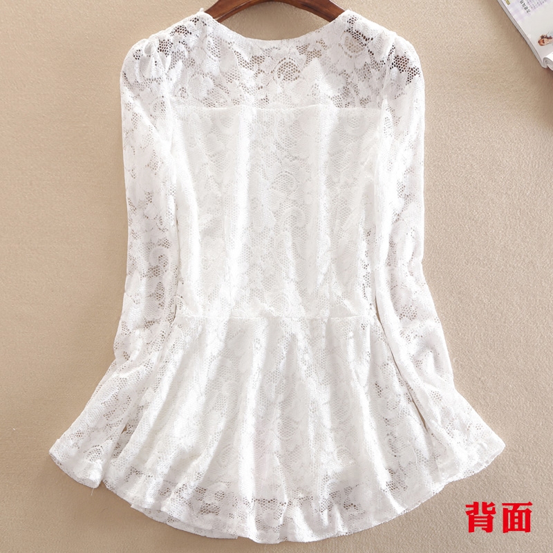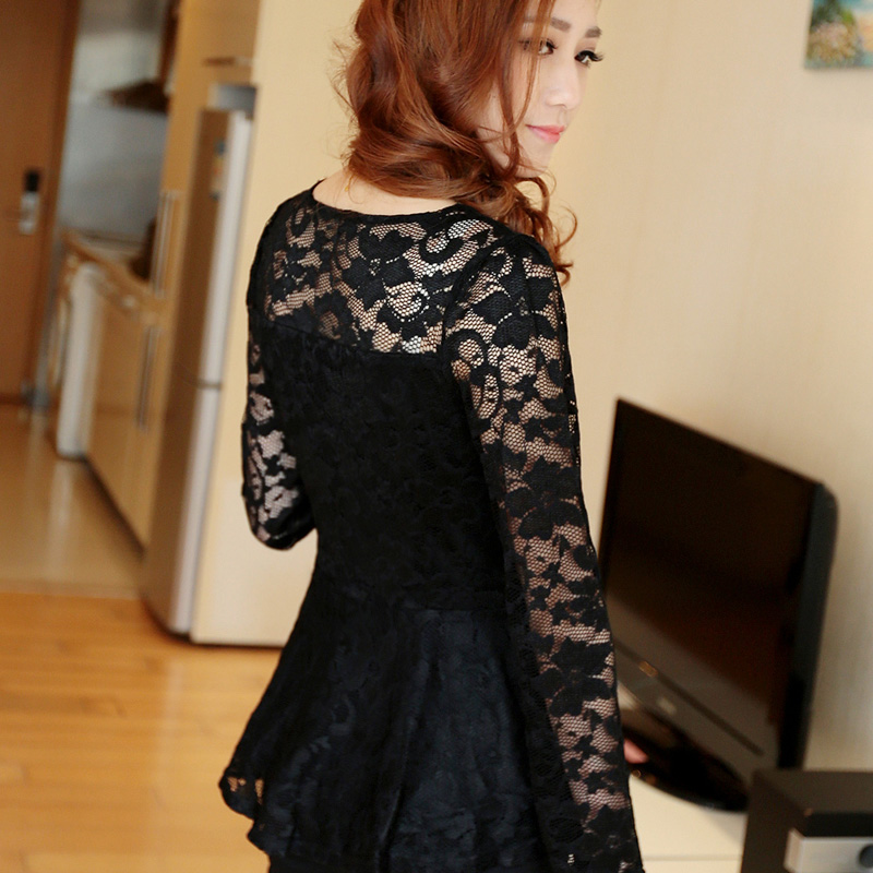/ 大碼顯瘦蕾絲衫女寬松春裝新款韓版中長款長袖打底衫女上衣小衫潮
