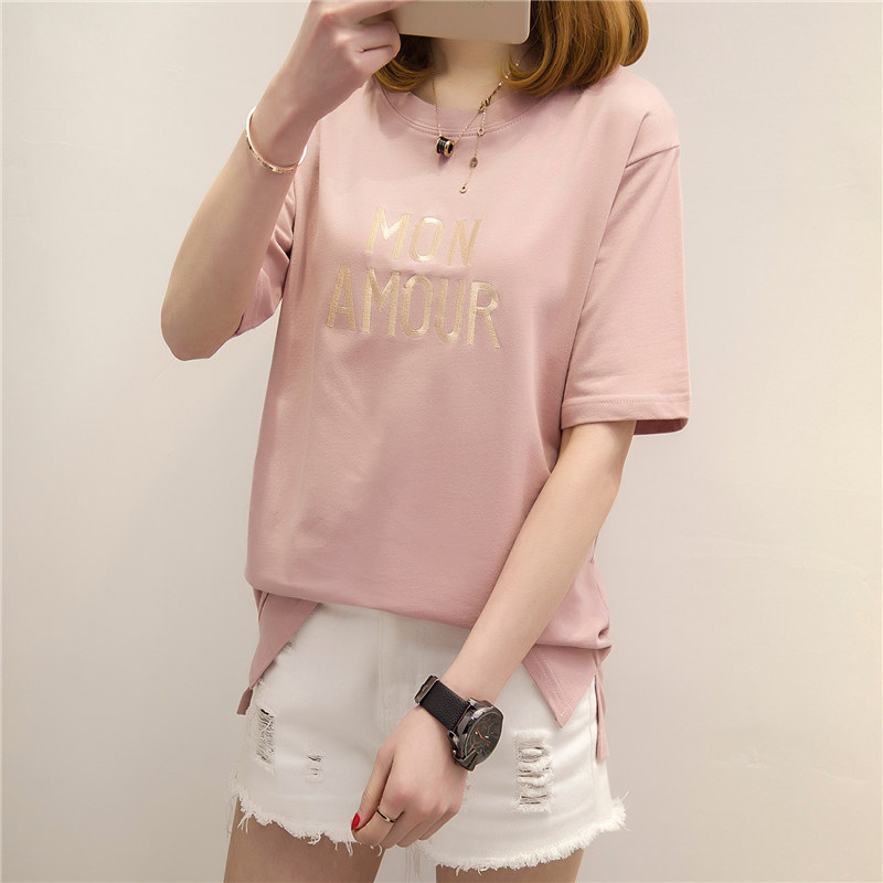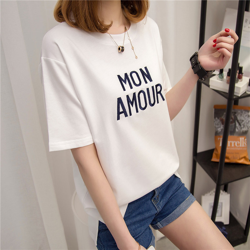 夏裝短袖t恤女字母寬松上衣打底衫女韓版體恤春季時尚新款潮