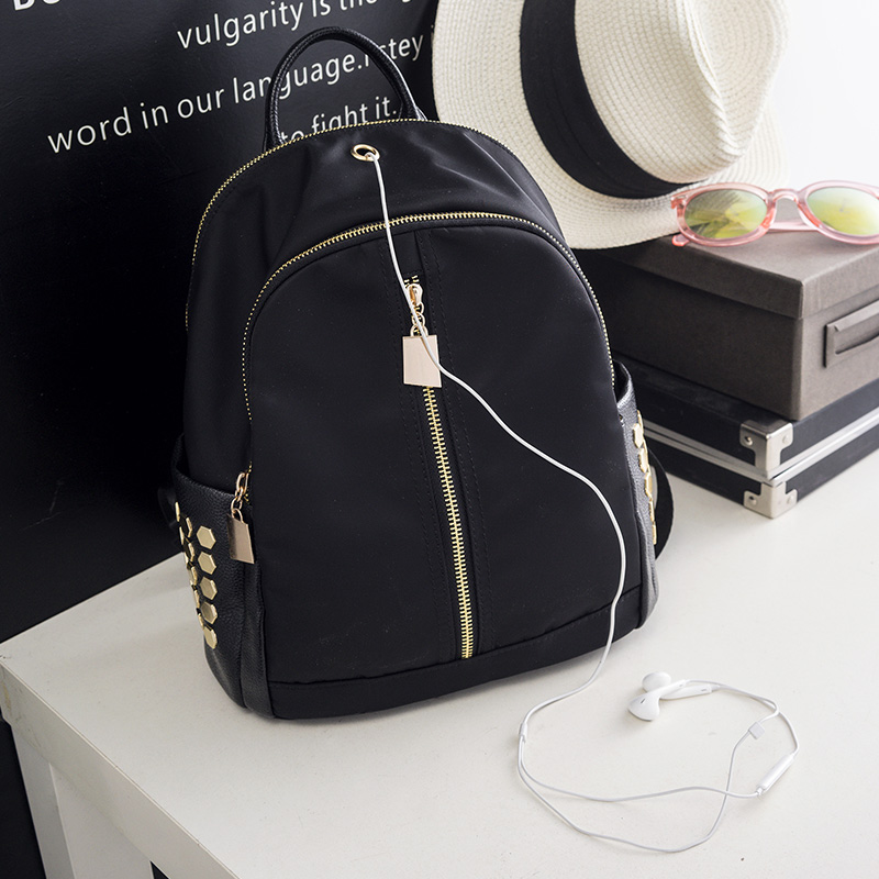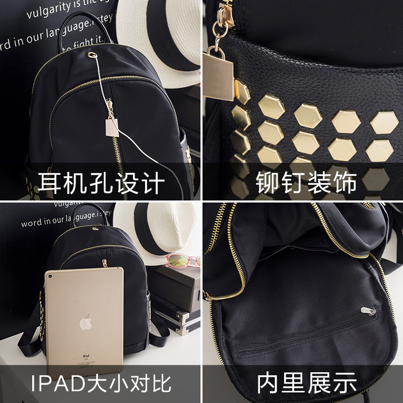/ 鉚釘雙肩包女韓版牛津布時尚個性百搭休閑尼龍包包新款潮背包