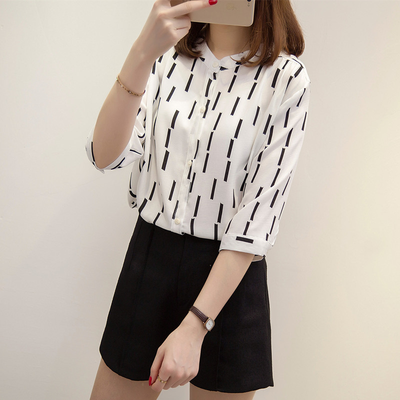/ 夏裝新款女小清新白襯衫女chic半袖外套韓范條紋襯衣上衣女夏